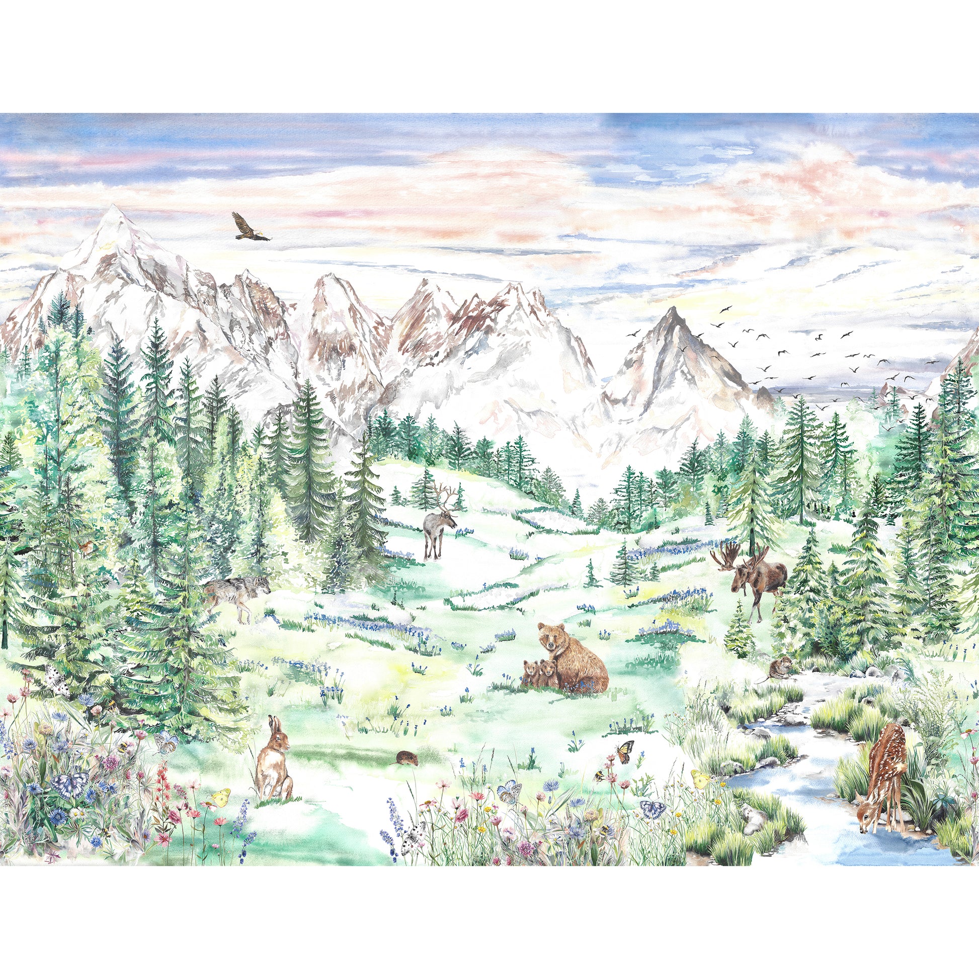 Alpine Meadow Mountain Mural Wallpaper for Kids and Nurseries