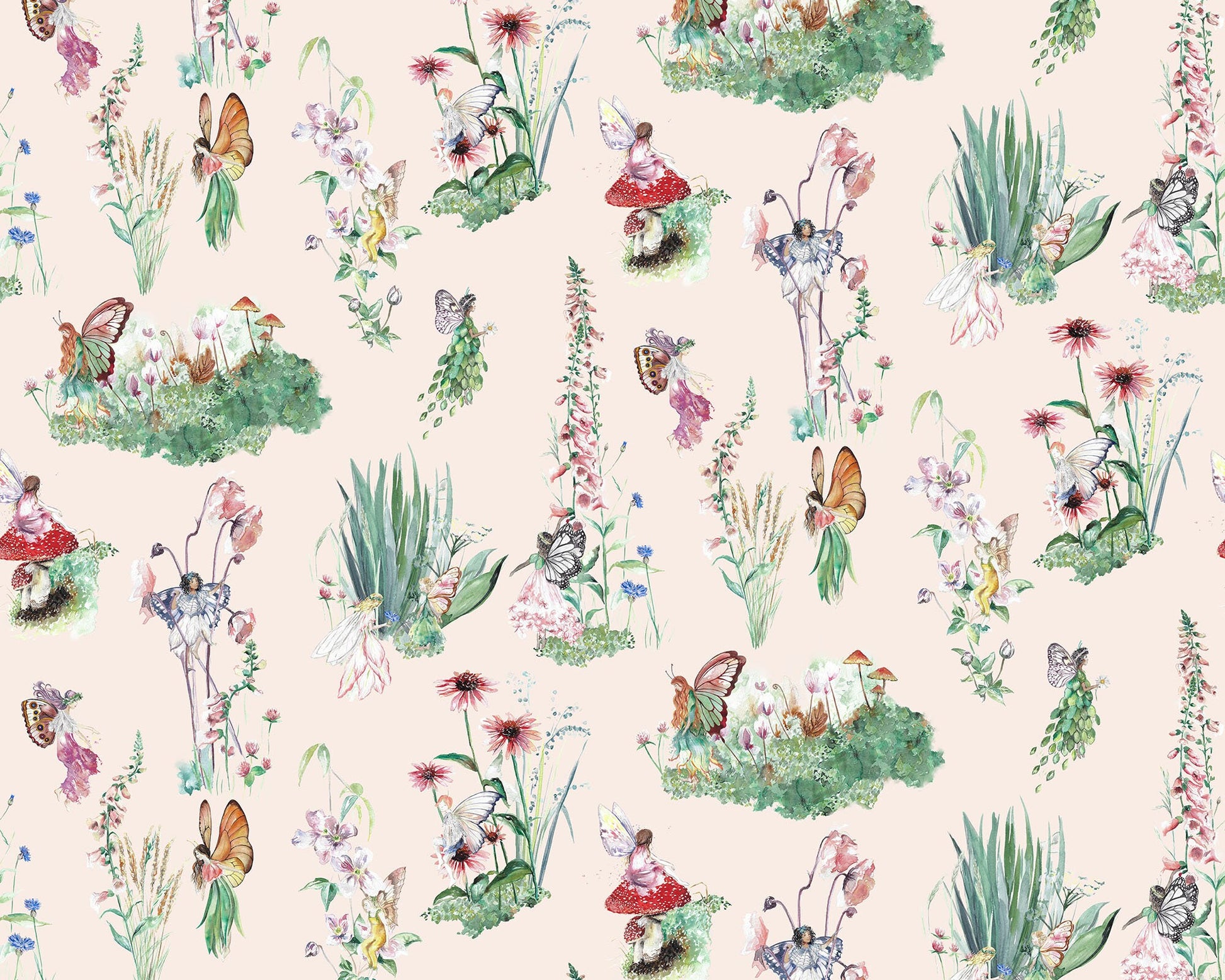 Create an enchanted wonderland for your little one with our fairy garden fabric. This vintage inspired pattern features intricately hand-painted, fairies, flowers and foliage.