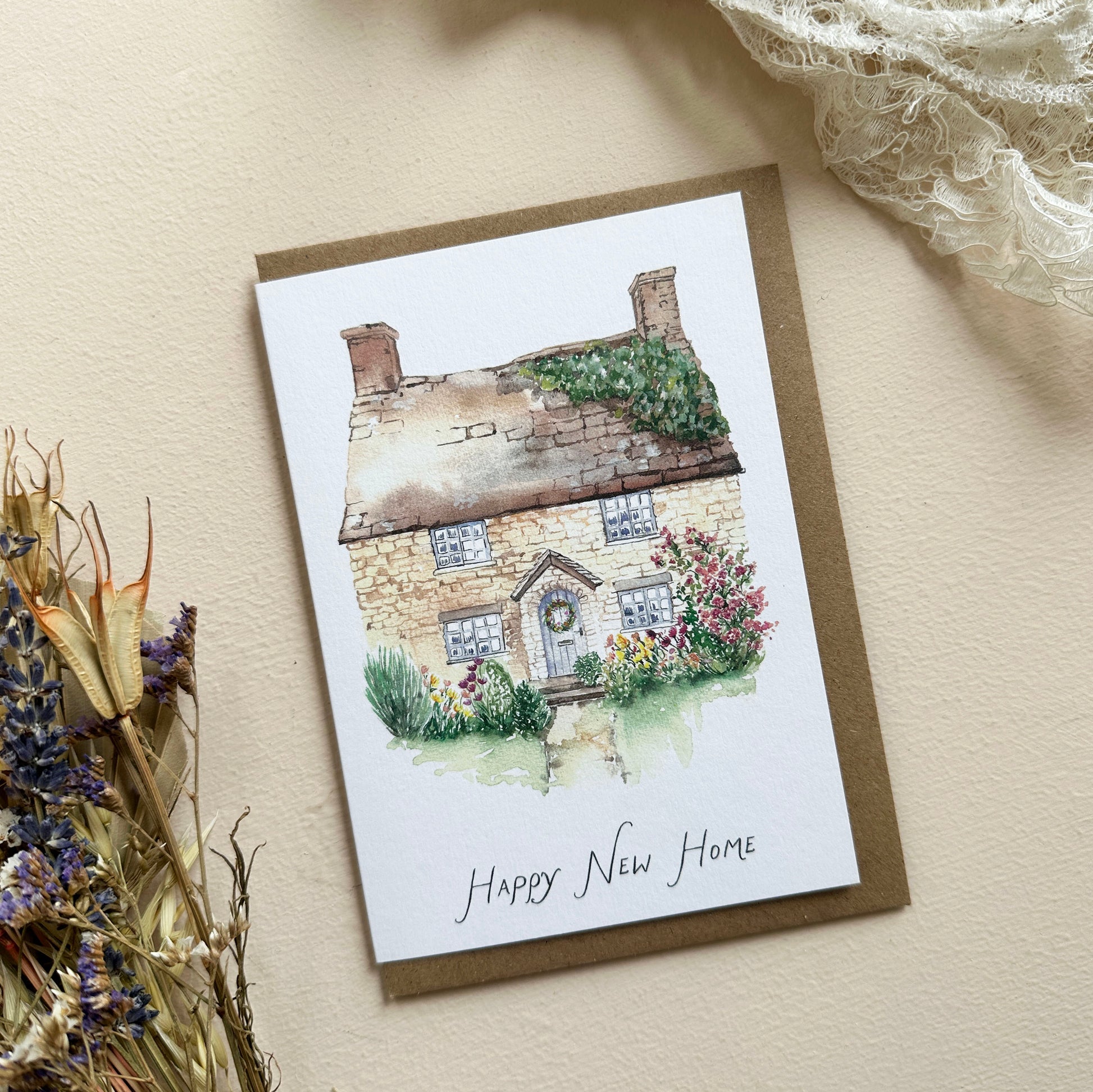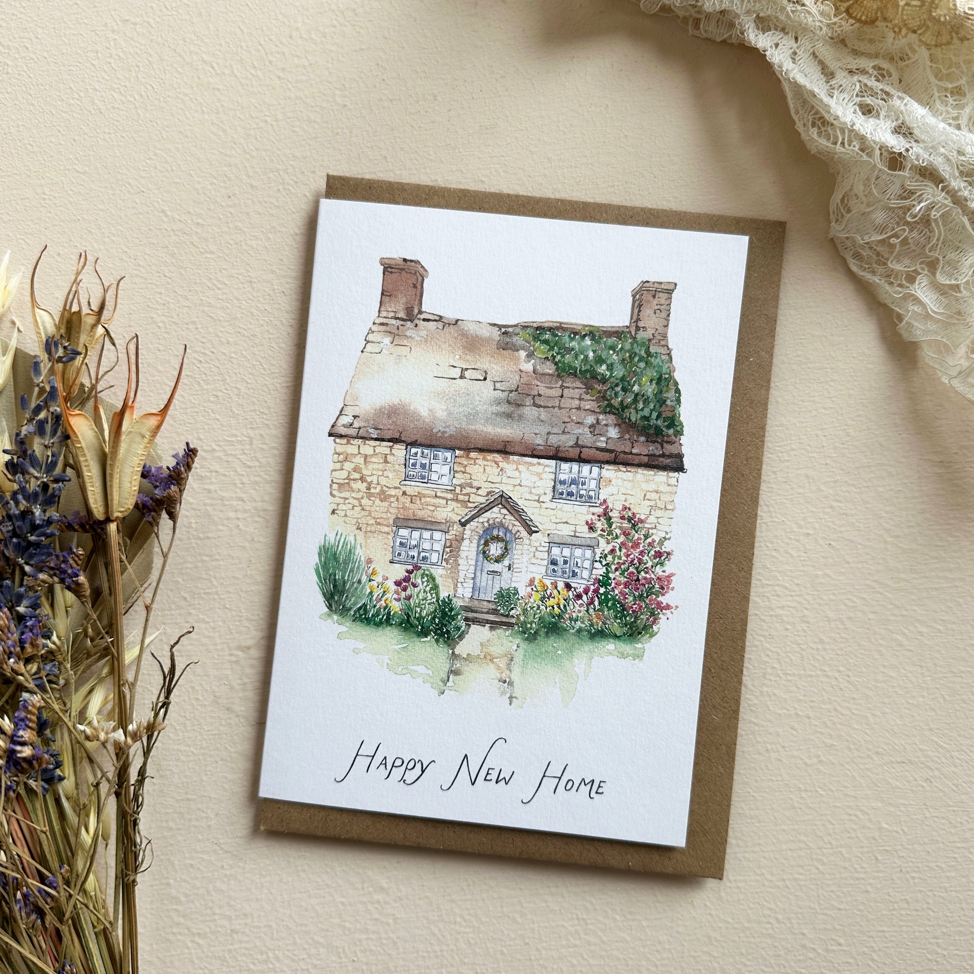 This beautifully illustrated, chocolate-box cottage has been delicately painted in watercolour. This makes the perfect card for sending well wishes to someone who has just moved house.