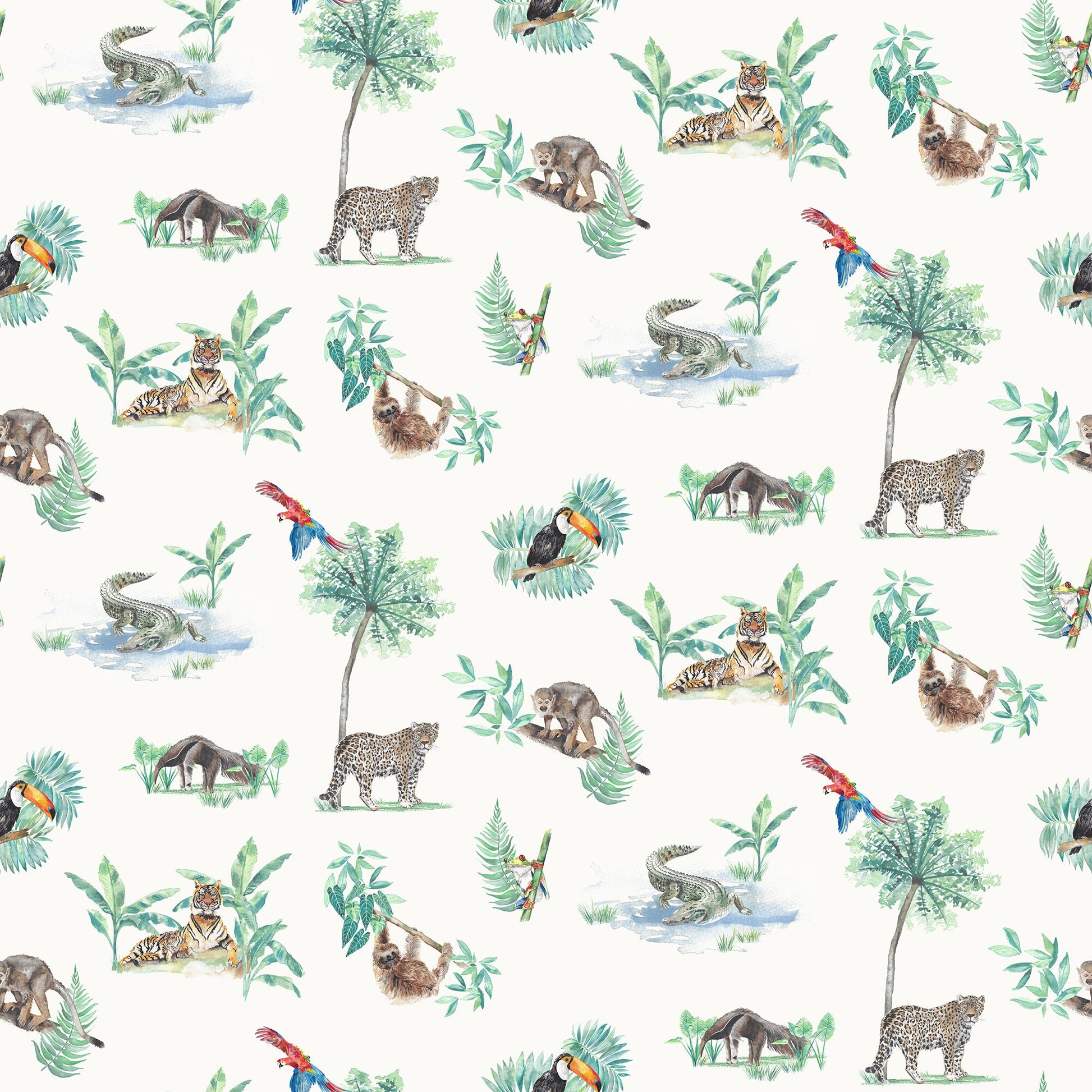 Inspired by the wildlife found in tropical rainforests, this stunning fabric is a fun decoration for a nursery or child's room. The natural colour palette of this timeless design will create an oasis of calm. Full of delicately painted details and an array of animals to discover, this design is sure to delight little explorers.