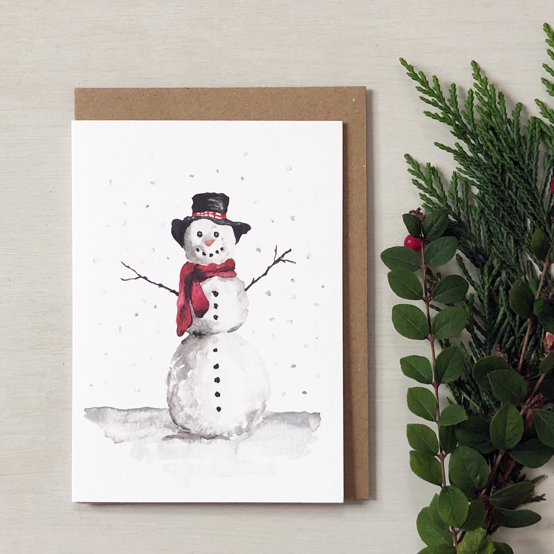 Spread winter cheer with this delightful watercolour snowman card, perfect for Christmas greetings and winter celebrations. Katie's original hand-painted artwork captures the charm and warmth of this beloved seasonal character.
