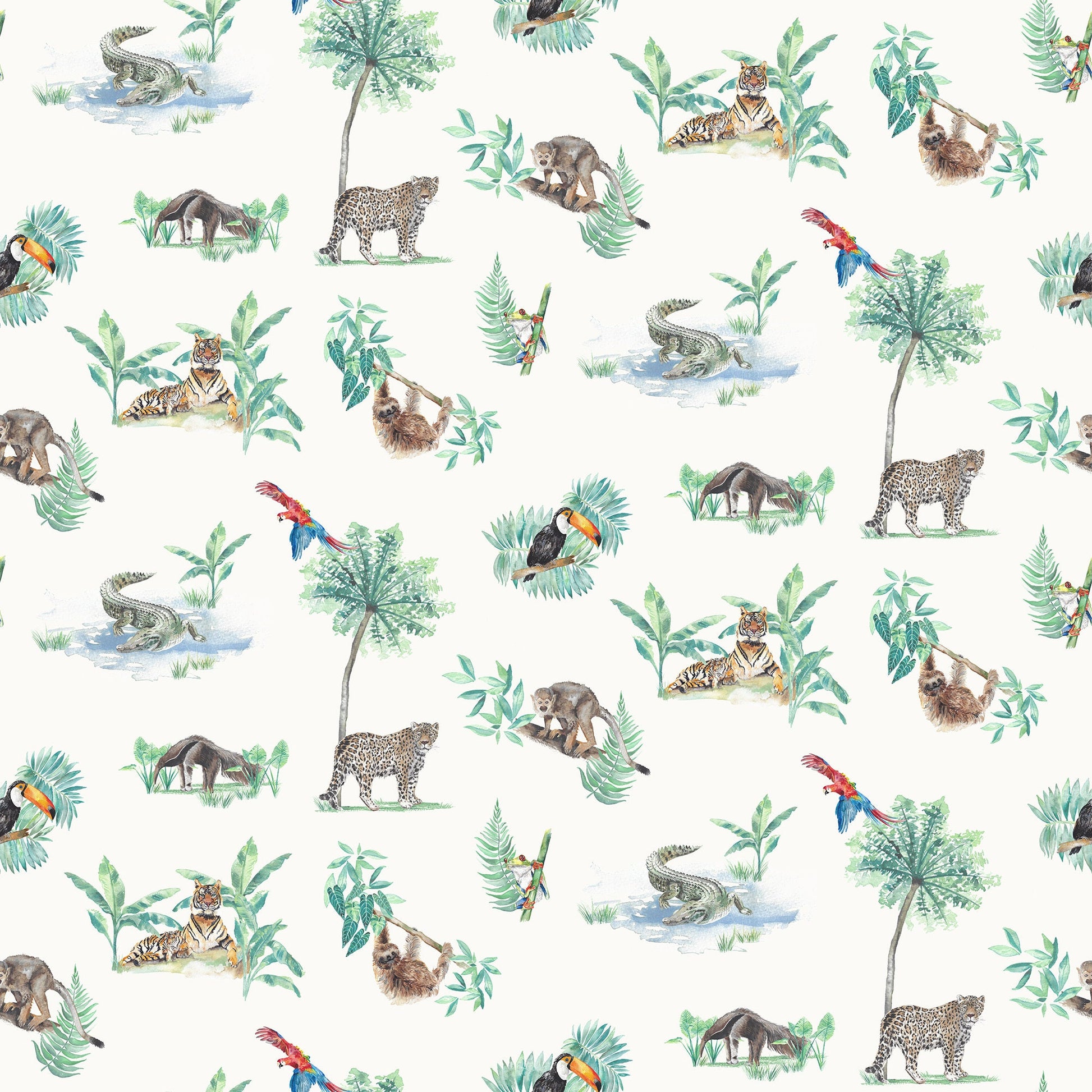Inspired by the wildlife found in tropical rainforests, this gentle wallpaper is a fun decoration for a nursery or child's room. The natural colour palette of this timeless design will create an oasis of calm. Full of delicately painted details and an array of animals to discover, this design is sure to delight little explorers. Katie's unique watercolour artwork is printed in England onto high-grade, non-woven wallpaper, which can be pasted straight to the wall for ease of application. Our wallpaper material is high strength, light resistant and wipeable, meaning that it will remain in perfect condition for years to come.
